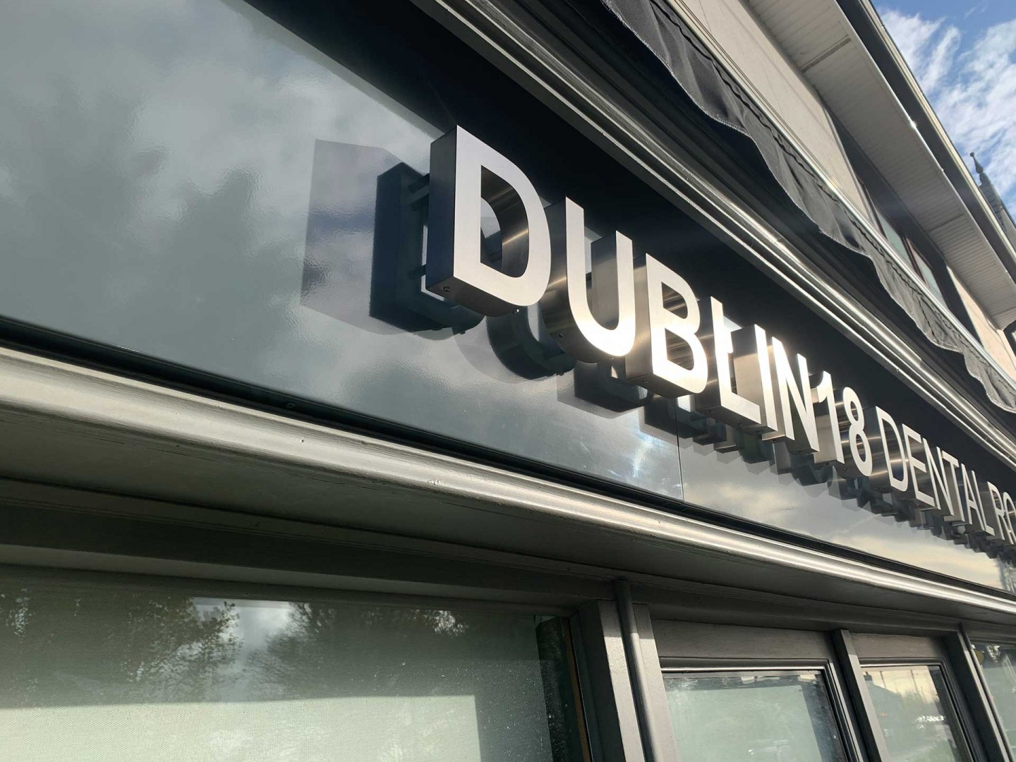 Here we combined Hand Made Stainless Steel Built Up Letters on Standoff with LED Hailo Illumination. These are all mounted on a powder coated aluminium folded panel, to hide any electrics, and painted to the clients requested Ral colour.